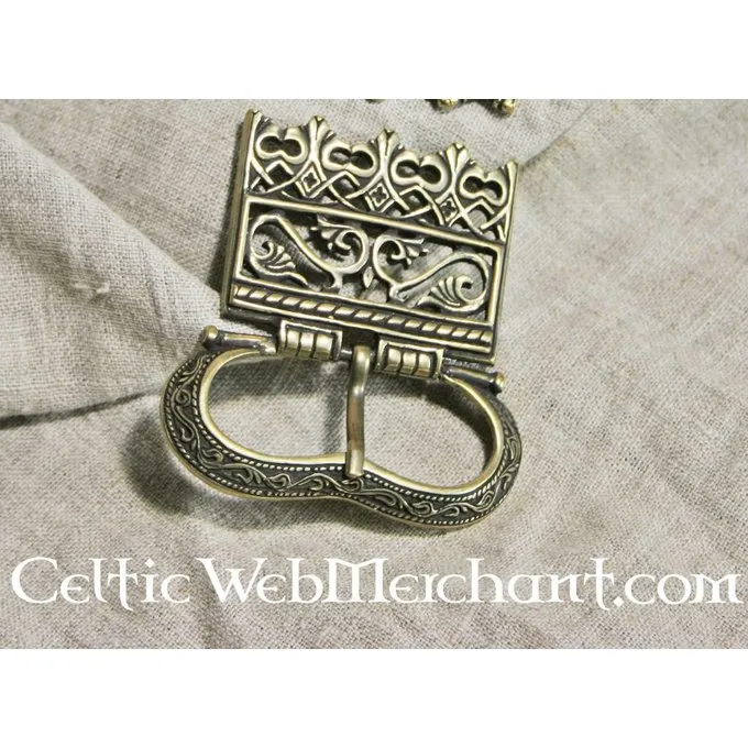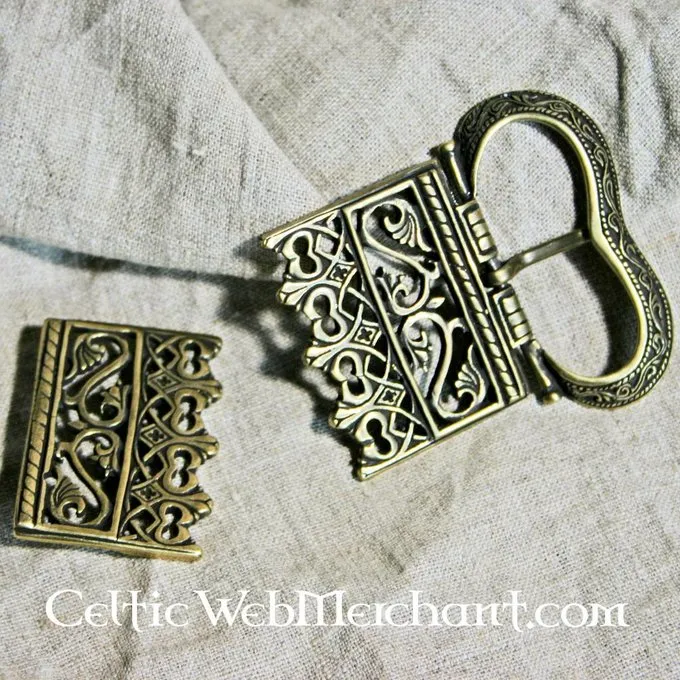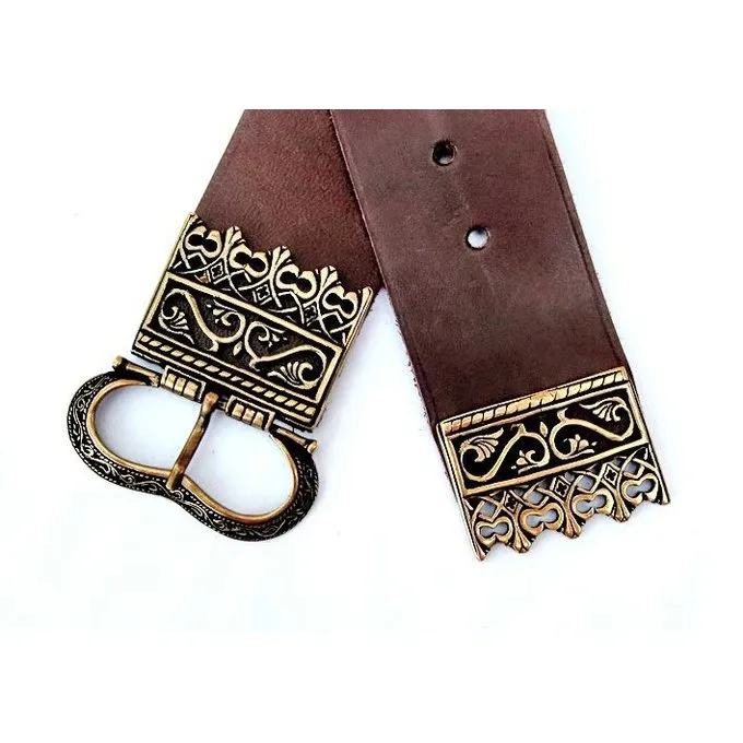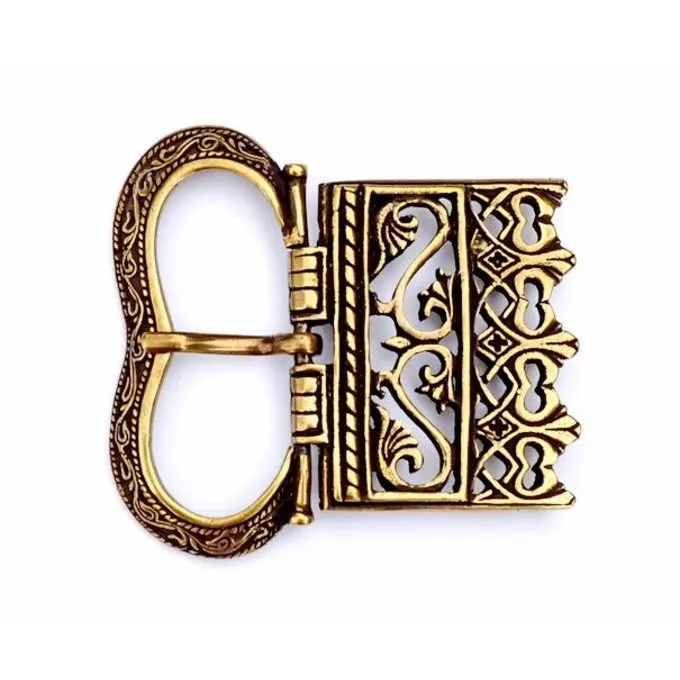This buckle is a replica of an original on the artwork: “Portrait of a lady” by the 15th century Flemish artist Rogier van der Weyden. Buckles like this were worn in Burgundy, Flanders and France around the 15th century. They were worn by both men and women.