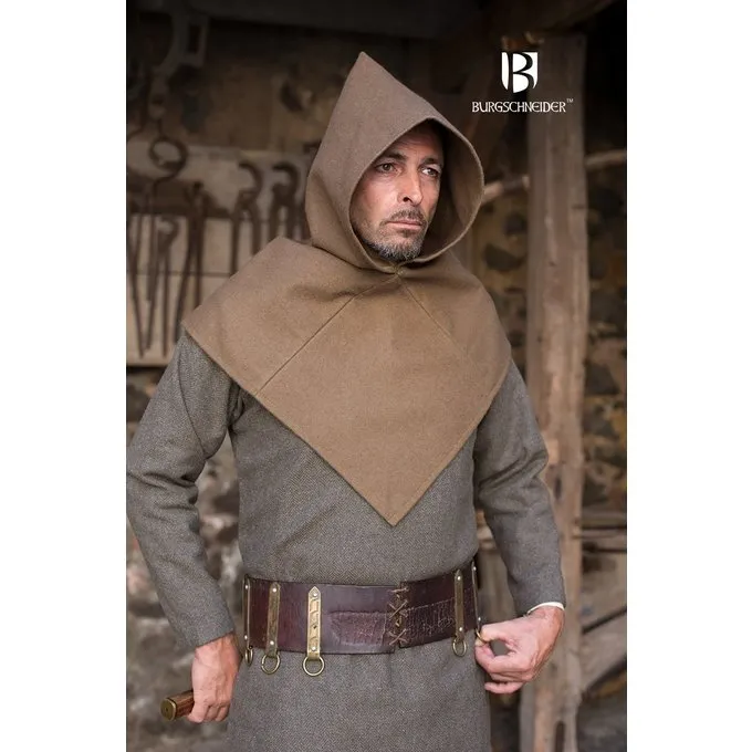 The chaperon became a gladly worn piece of clothing in the High Middle Ages. It protects the head, neck and shoulders from cold weather and rain. During the High Middle Ages they were worn by all classes of society and were often decorated and worn in bright colors. In the Late Middle Ages, their use was limited to the more common people who started to wear them in alternative ways. The liripipe for example, which used to hang from the back, was later wrapped around the neck.