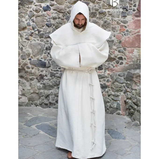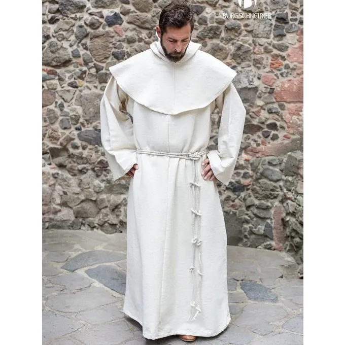 This monk habit is is made after habits worn by the Cistercian Order from the 12th century onwards. The Cistercian monks were called ‘White Monks’ because of the colour of their habit. The medieval Cistercians emphasized manual labour and self-sufficiency. Bernard of Clairvaux (1090-1153) was the primary reformer of the order and helped it spread throughout Europe during the 12th century.