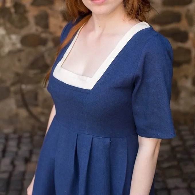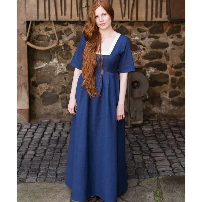 This beautiful medeival dress is both elegant and practical. Pracitcal, because the sleeves can be ordered separately and are thus easily adjusted to your needs. Elegant, because of the beautiful design of this medieval highlight. The dress is based on 14th century originals, but similar models were used in the 13th and 15th centuries as well. It can be easily combined with an underdress to complete your historical look. It is also suitable for larger sizes and makes a wonderful cleavage. This dress is designed by DarkDirndl, a company specialised in historical and historically inspired clothing.