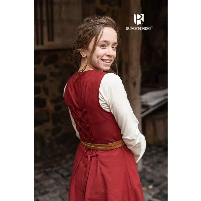 This light, sleeveless dress in fine cotton hugs the upper body and is fitted to the figure with a lacing at the back. The dress has a V-neckline with decorative embroidery, which continues at the hem. The Khara dress can be worn as an overdress in combination with a long tunic or dress.