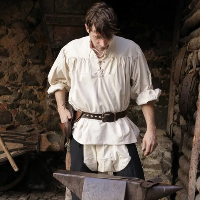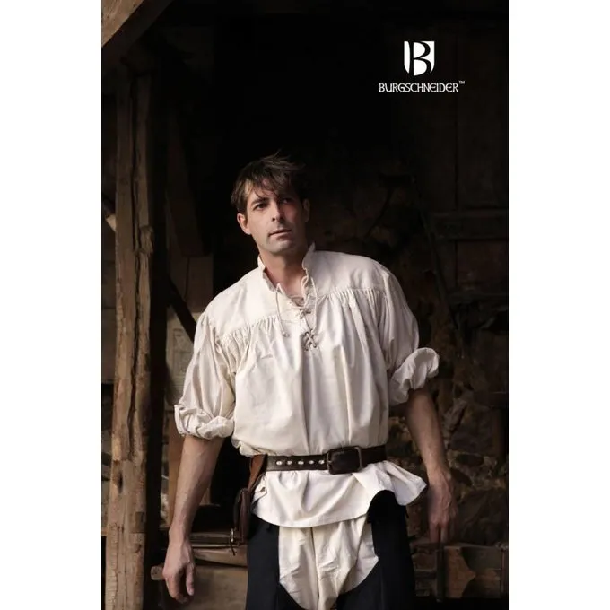 A stylish Renaissance shirt made of natural rough textured cotton. This shirt can be worn in several ways and is perfect for intensive and long-term use. It is available in the sizes S up to XXL.