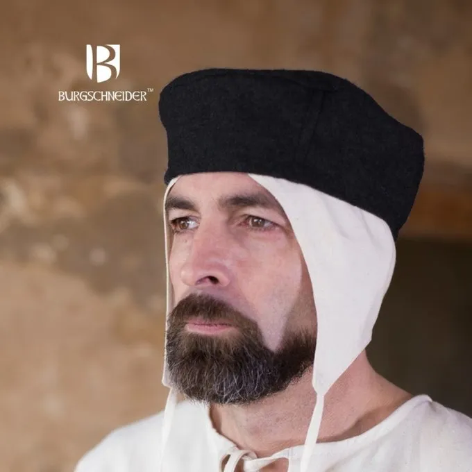 Hats like this were worn during the High and Late Middle Ages. There are several depictions of them in manuscripts. They can very well be combined with the cap Bertram.
