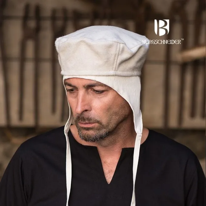 Hats like this were worn during the High and Late Middle Ages. There are several depictions of them in manuscripts. They can very well be combined with the cap Bertram.