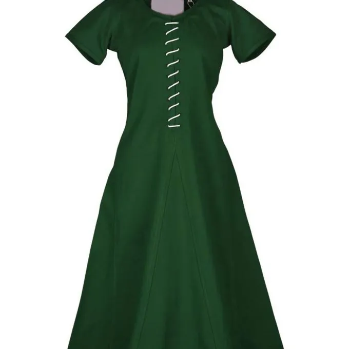 This beautiful cotehardie is made of a sturdy cotton fabric and has short sleeves, perfect for the warmer months. In the skirt, according to historical examples, wedge-shaped textile strips were used to make the skirt fall wider.