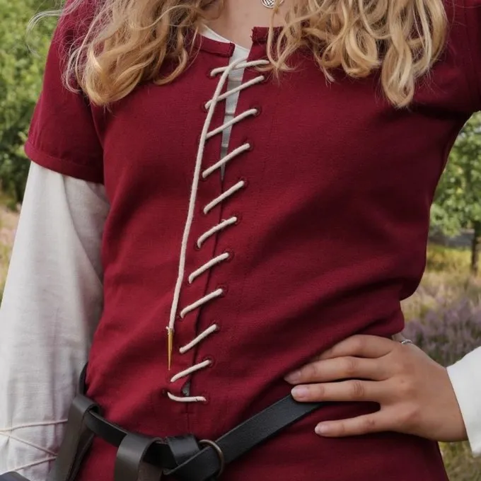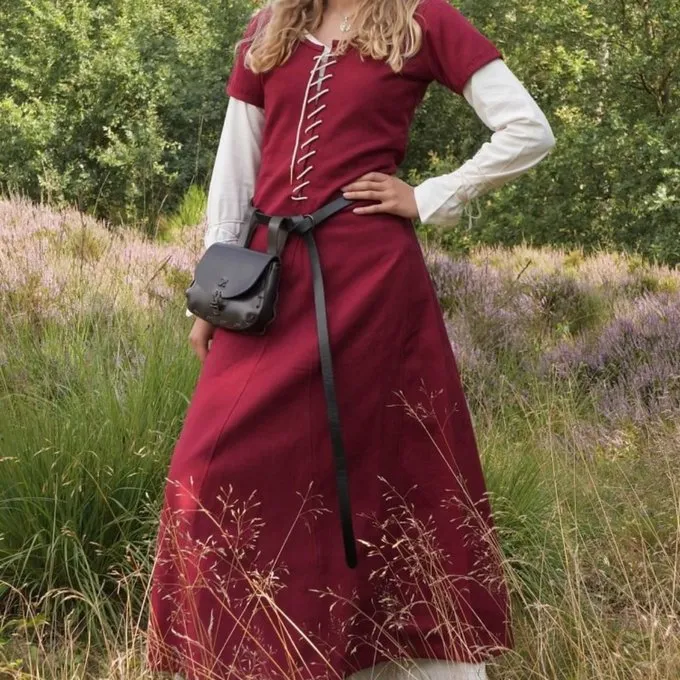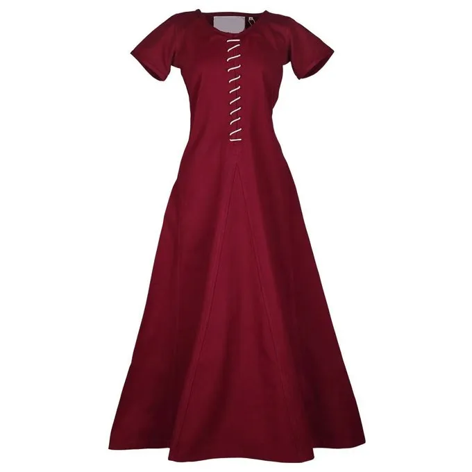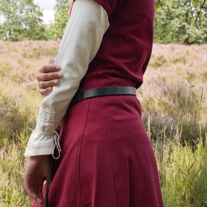 This beautiful cotehardie is made of a sturdy cotton fabric and has short sleeves, perfect for the warmer months. In the skirt, according to historical examples, wedge-shaped textile strips were used to make the skirt fall wider.