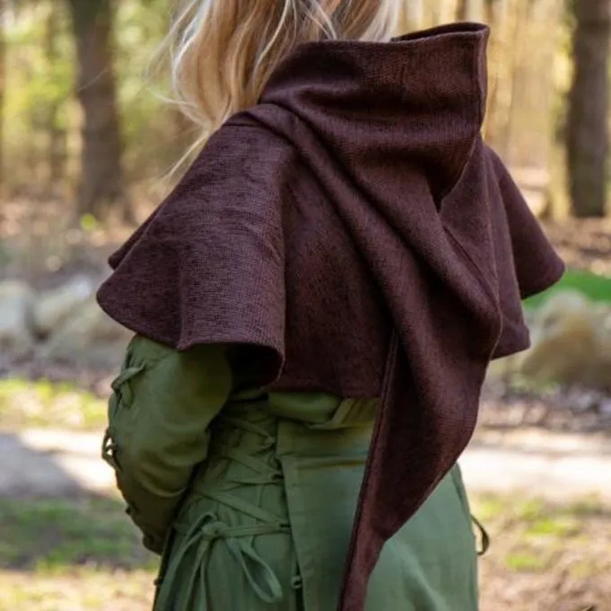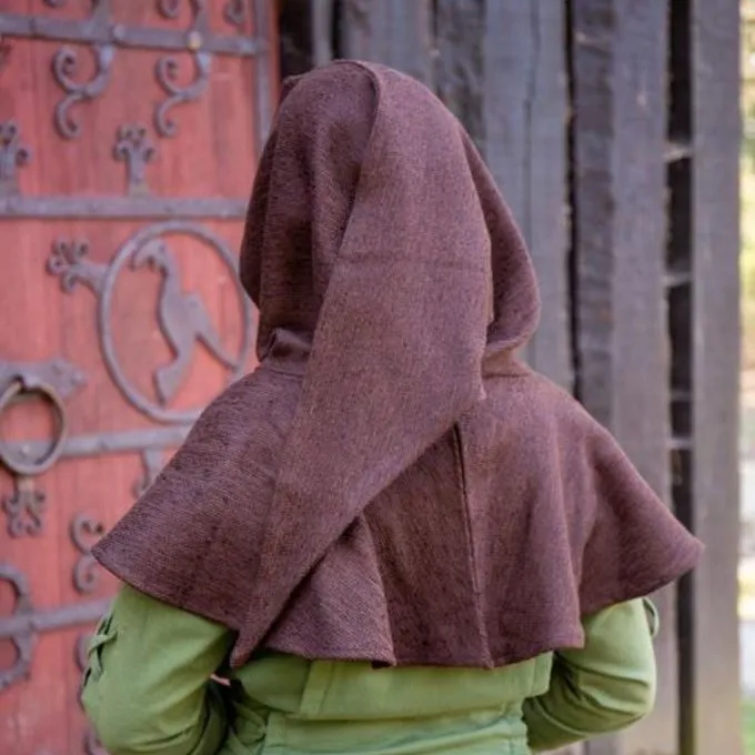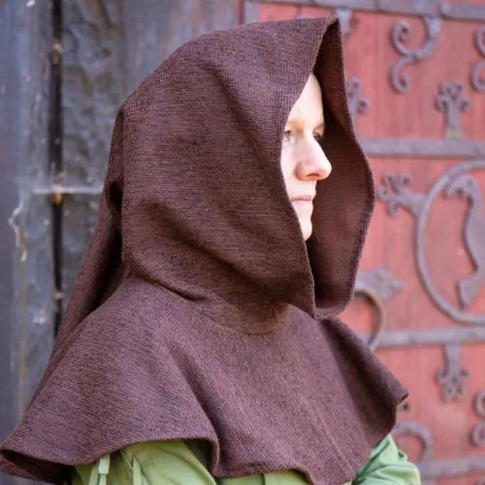 This classic chaperon model is a great addition to your reenactment, LARP or living history outfit. This low priced but fine model is made of cotton so perfect for a spring or autumn day and for wet days. During windy days it keeps the cold out of your neck. The hood also provides extra warmth when you wear it in your sleeping bag during camps and festivals. Chaperons have been worn since Roman times and the chaperons were worn differently in each historical period. This chaperon is typical for the Viking age and the Middle Ages. It has a short hood and protects the neck and head from cold. The chaperon was a medieval and Viking headdress that was worn by all classes of society. So you can use a chaperon for all types of outfits, and decorate it yourself if required.