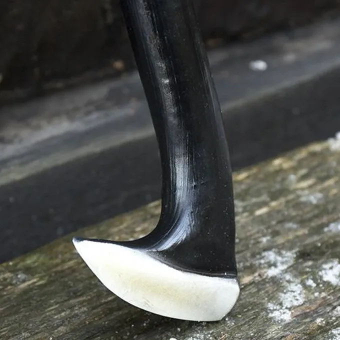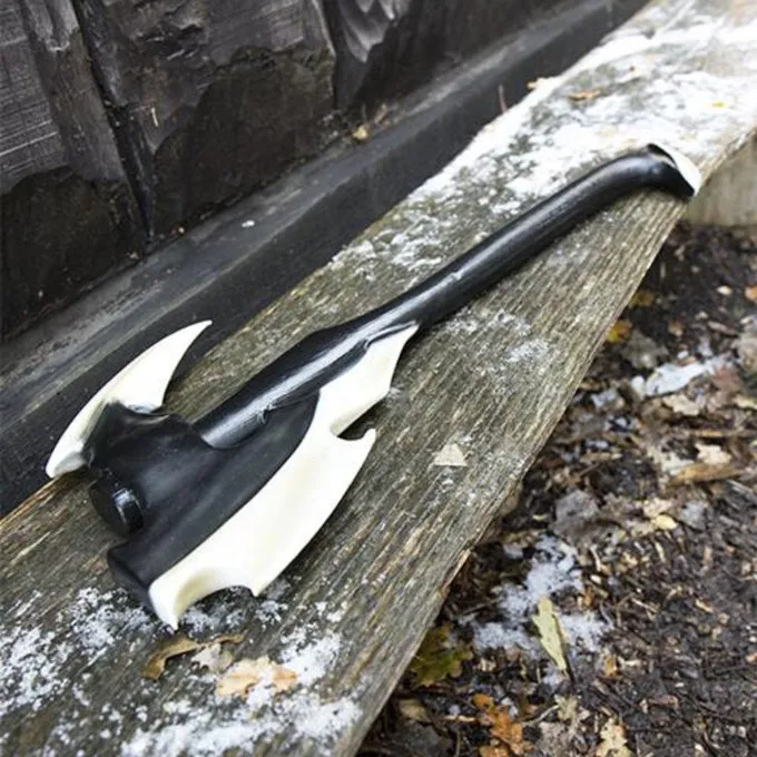 This LARP axe is perfect for evil characters. The axehead consists of two colors and the light part is shaped like a claw. The shaft is painted to look like dark wood. The look of this axe is grim and makes your character even darker.
