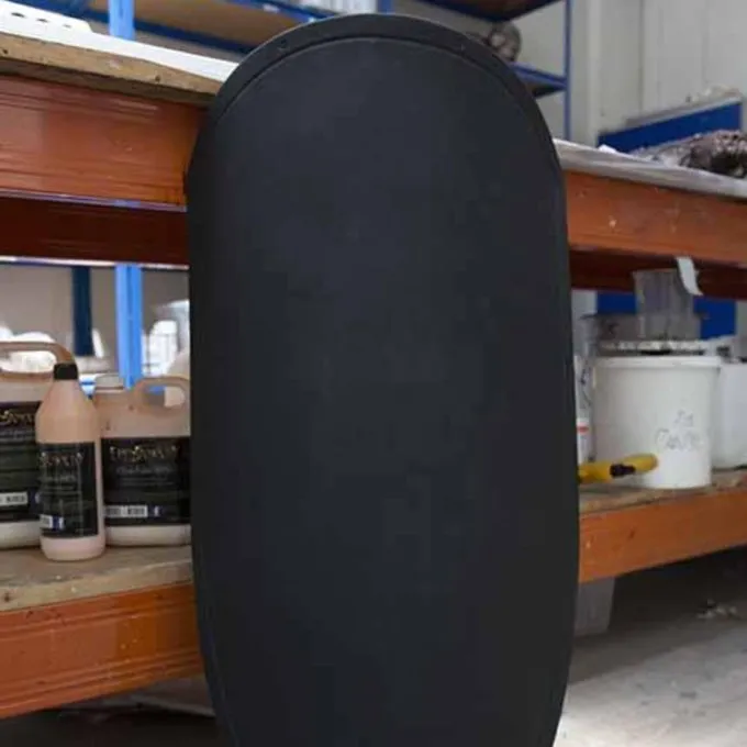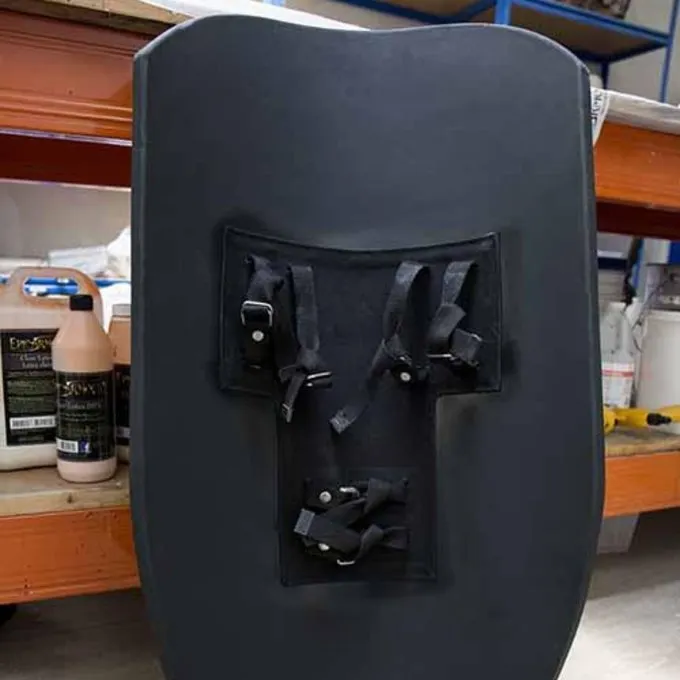 This LARP shield is based on historical shields that were used during the Middle Ages. This shield is delivered uncoloured and undecorated without a latex coating so that you can decorate it entirely to your own liking. The shield is designed with an edge and imitation rivets. For example, you can paint the edge in steel color or gold color. The shield has three straps at the back so you can hold it comfortably.