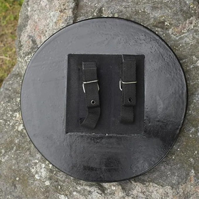 Details/Material: Foam, latex/Color: black with golden edge/Diameter: 36 cm/Length of the grip: 17 cm/Width of grip: 17 cm/Thickness: 2.5 cm/Weight: 175 g/Also suitable for beginning roleplayers/Durable foam/Meets high safety requirements/Sturdy latex coa