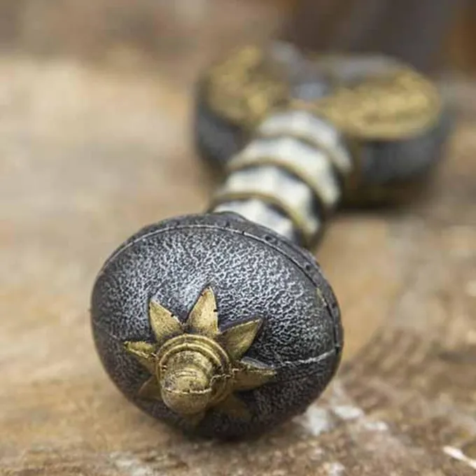 This LARP sword is made after historical originals from classical Antiquity. It has a beautiful grip and a cross-guard with gold and silver details and is painted by hand to make it look lifelike. A high quality LARP weapon for LARP battles, Cosplay and Roman characters like emperors and gladiators.