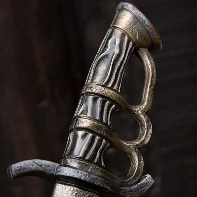 Material: fiberglass, EVA foam, latex / Suitable for LARP battles / Length: 85 cm / Grip length: 11 cm / Blade length: 65 cm / Blade width: 10 cm / Width of cross-guard: 10,5 cm / Guard depth: 2,5 cm / Circumference grip: 8,5 cm / Weight: 357 grams