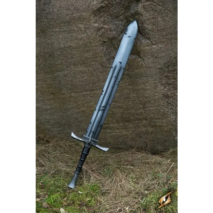 Material: fiberglass, EVA foam, latex / Suitable for LARP battles / Length: 85 cm / Grip length: 12,5 cm / Blade length: 59 cm / Blade width: 7 cm / Width of cross-guard: 19 cm / Circumference grip: 10 cm / Weight: 363 grams