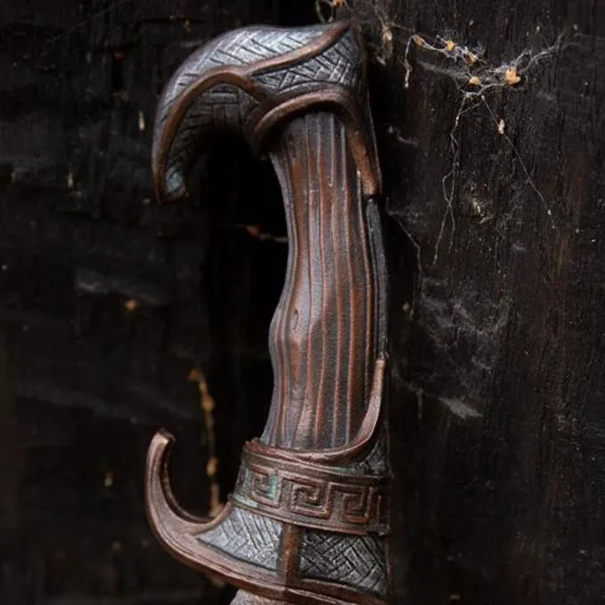 Material: fiberglass, EVA foam, latex / Suitable for LARP battles / Length: 85 cm / Grip length: 9 cm / Blade length: 65 cm / Blade width: 8 cm / Width of cross-guard: 9 cm / Circumference grip: 10 cm / Weight: 338 grams