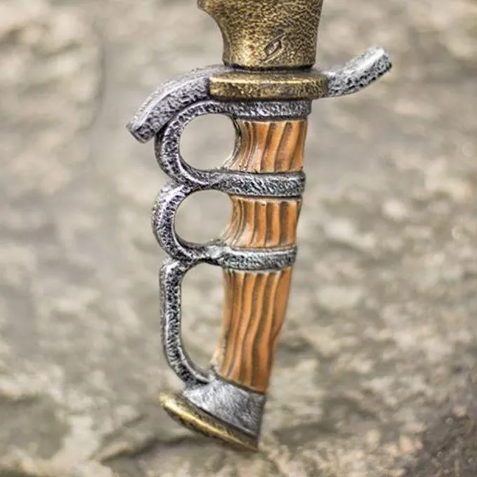 This LARP weapon is based on originals used during the First World War. It has a beautiful wooden-looking grip and a cross-guard with gold-colored details and is hand-painted to make it look lifelike. A high quality LARP weapon for LARP battles and Cosplay.
