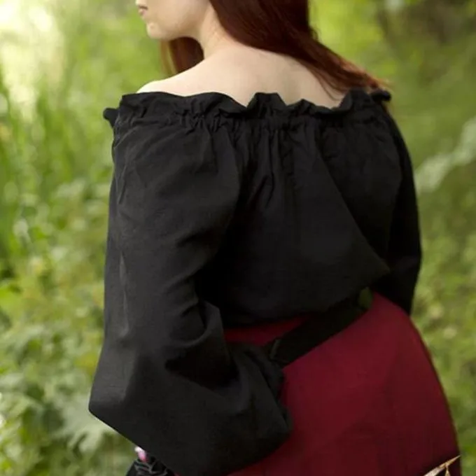 The wide loose style of this blouse is suitable for re-enactment, LARP and Cosplay of Pirates, musketeers, and other Renaissance and Baroque characters.