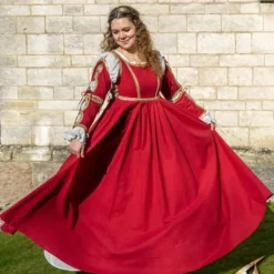 Dress Lucrezia is the perfect dress for every adventurer who wants to come to the palace looking feminine and chic. The dress is inspired by the Renaissance with gold embroidery to emphasize a rich and luxurious lifestyle. The arms can be completely detached or attached as desired. Please note: the white slip dress is available separately, see related products. Ideal for Medici, Borgia and other historical LARP, Cosplay and reenactment characters.