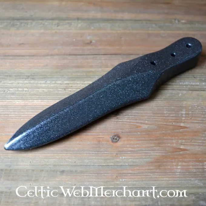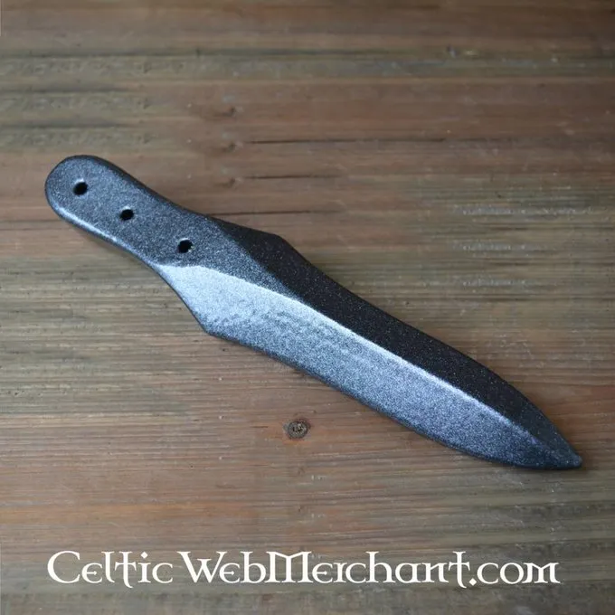 Knife with 3 holes, a throwing knife made of foam. The length of this LARP weapon is approx. 24 cm with a grip of approx. 8 cm. The blade is approx. 16 cm long and 6 cm wide. The weapon is made of durable foam with a coating of strong latex. The throwing knife is handmade and manually colored, so every item is unique. Because of the material we do not recommend leaving it in the sun for a longer period of time. All Epic Armoury weapons meet high safety standards.