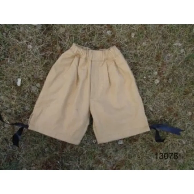 The three-quarter trousers became a popular garment at the 16th and 17th century courts and became known as the Culotte. These trousers are made of cotton and they have an elastic band at the waist. They have cords to fasten the ends of the legs. The trousers are available in size XXXS to XS in black, green, blue, dark brown and light brown.