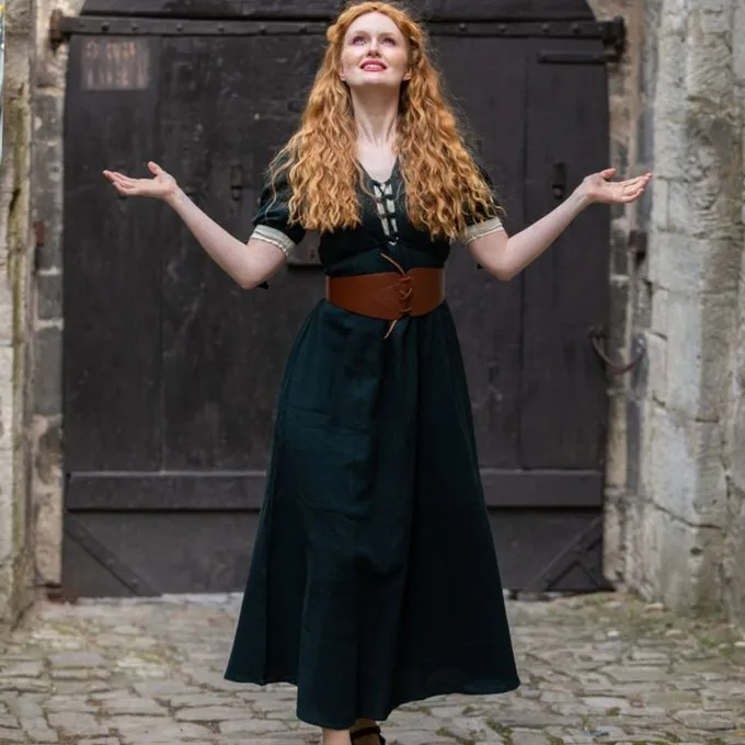 This beautiful waist belt with Celtic knots can be worn over a dress or blouse. It has leather laces for fastening. The belt is available in several colors and sizes
