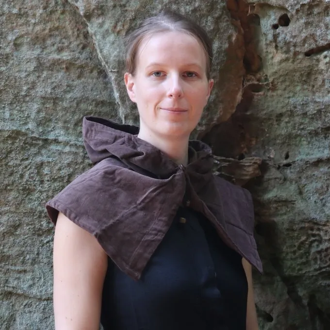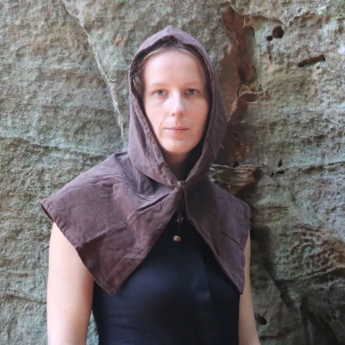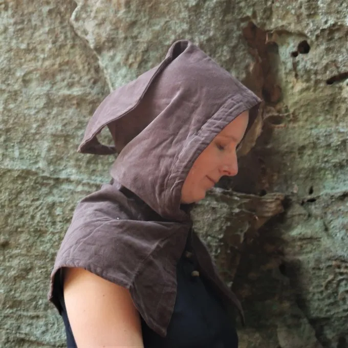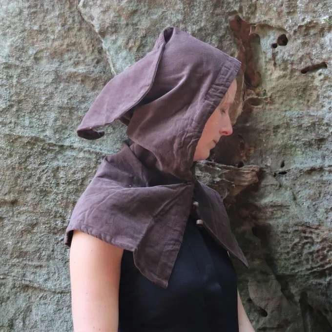 The chaperon is a hooded headwear that was often worn during the Middle Ages. The cap reached to the shoulders so that the head and neck of the wearer were completely covered; only the face was not covered. The chaperon ended at the back of the head in a long point (liripipe) as a kind of pointed hood. During the early Middle Ages the chaperon was mostly worn by poor people. From the 14th century on richer people started wearing chaperons as well, made of a more luxurious fabric.