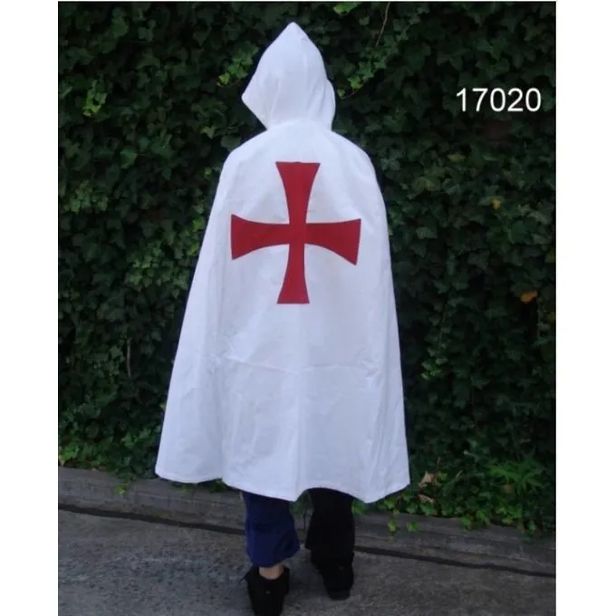 This cloak is made of white cotton and has a red templar cross at the back. It has a short hood.