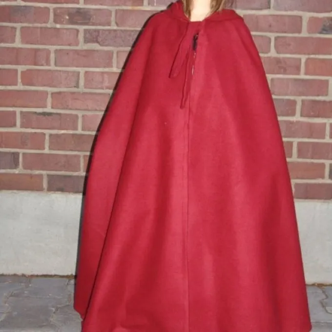 This medieval cloak has an extra large hood to provide more protection against rain and cold. Cloaks like this were historically even used for sleeping. This cloak is suitable for re-enacting several periods. This children’s cloak is made of a wool mix and is available in black, green, blue, red, brown, cream and gray. It is 105 cm long and circa 240 cm wide