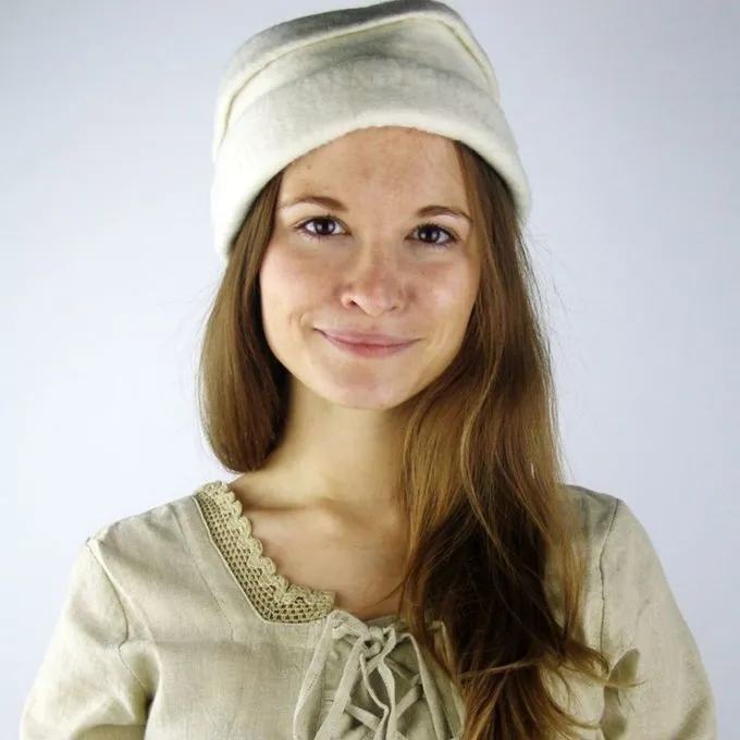 This hat is made of felt and is characteristic for the female citizens of North-West Europe in the Renaissance. It is available in one size in the colours white, red and green.