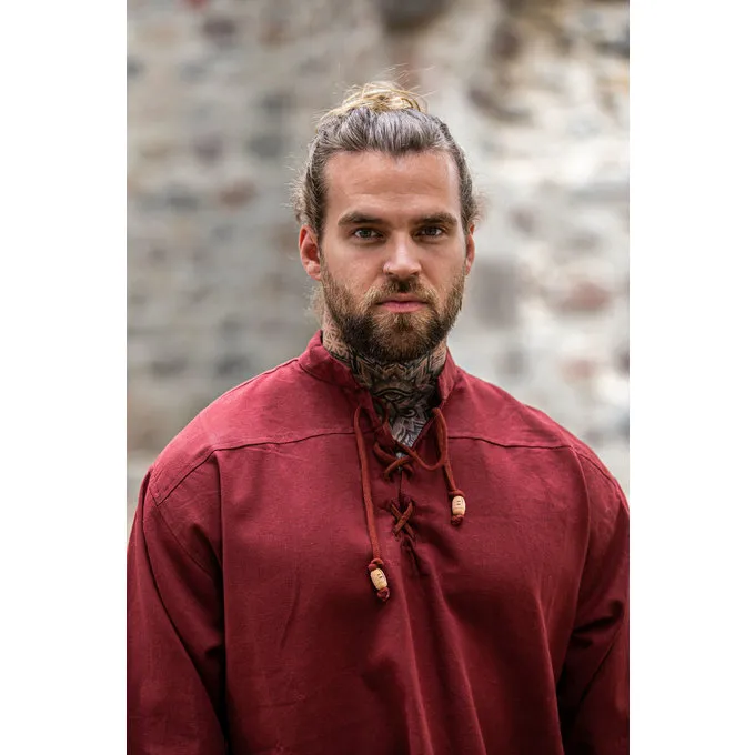 This shirt is handwoven of soft cotton. The neck can be closed with a cord. It is available in the colours black, green, blue, red, cream, light brown and dark brown in the sizes S up to XXXL.