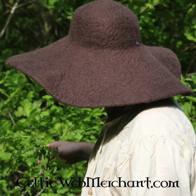 This hat is based on various paintings from the 15th, 16th and 17th centuries. Similar hats were used worldwide up until the 18th century. They were ideal for persons working outside or on the fields. The hat is made of 100% wool. Its wide brim protects against the sun. It is suitable for a head circumference of 59-61 cm.