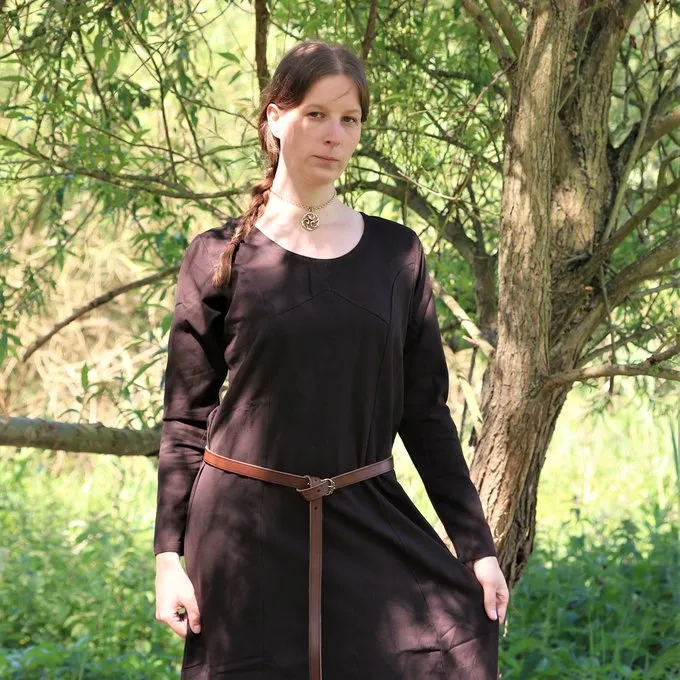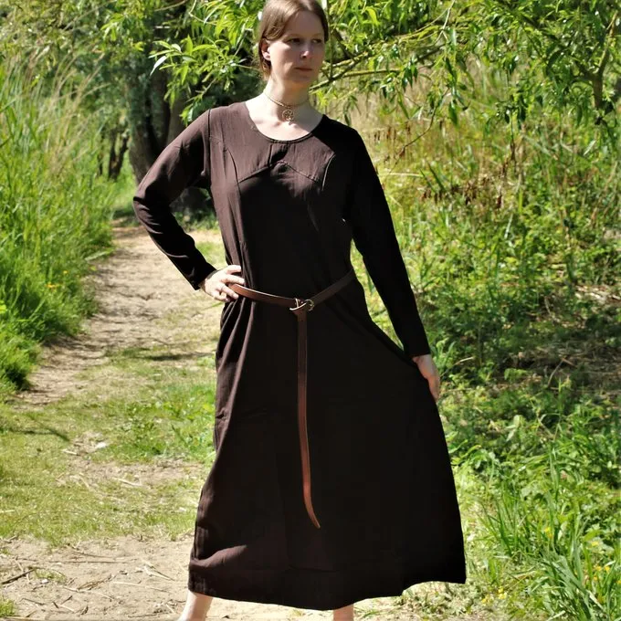 This cotton dress is multifunctional. It is suitable as underdress, but can also be worn separately. It has long sleeves and can be adjusted by a cord on the back. The dress is available in size S to XXXL and is available in cream, dark brown and olive green.