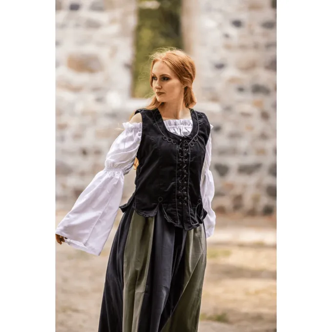 This corset is made after several originals depicted in Renaissance paintings. This corset is very suitable to wear over a blouse and skirt at a medieval festival. This corset has laces at the front with which it can be adjusted to your fit.