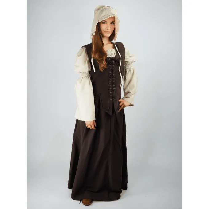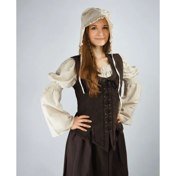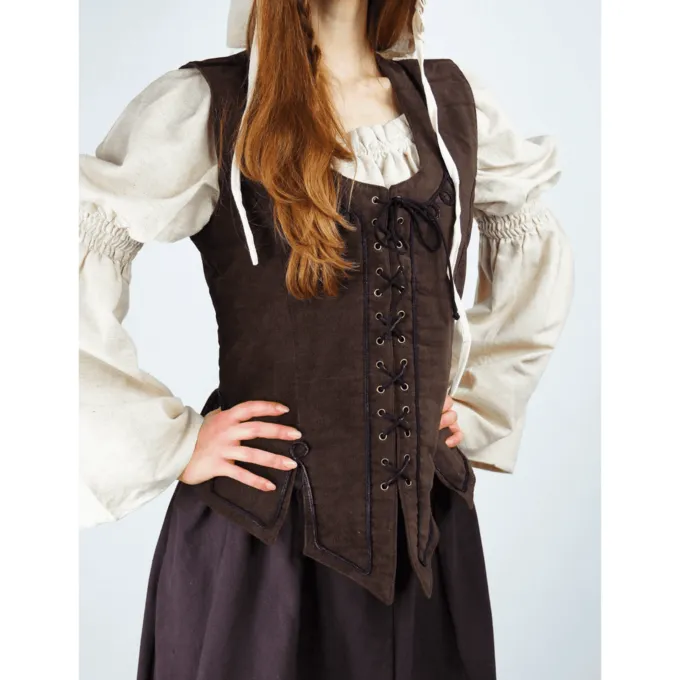 This corset is made after several originals depicted in Renaissance paintings. This corset is very suitable to wear over a blouse and skirt at a medieval festival. This corset has laces at the front with which it can be adjusted to your fit.