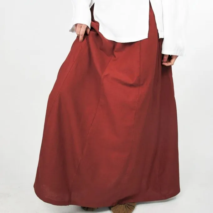 This skirt is made of a cotton-linen mix and has an elastic band at the waist for a good fitting size.
