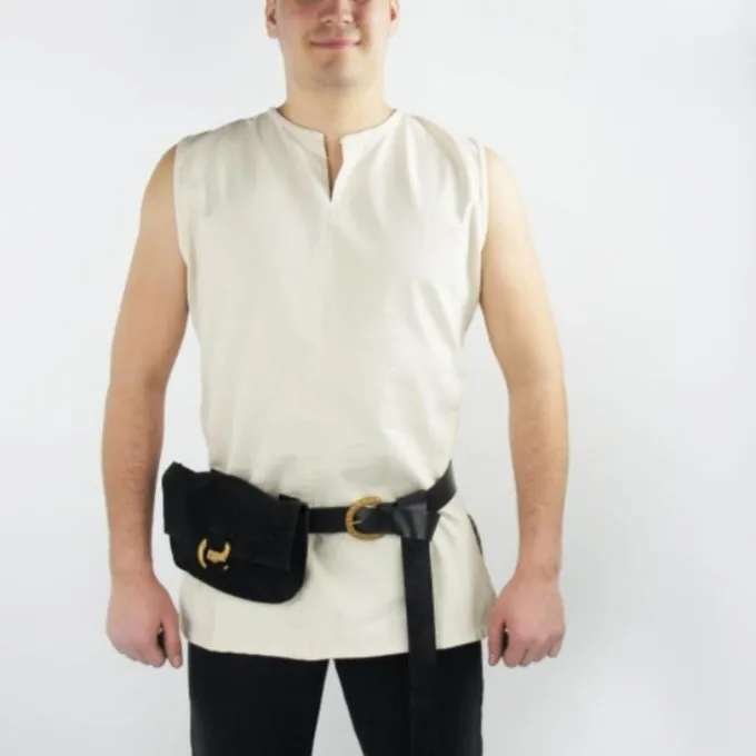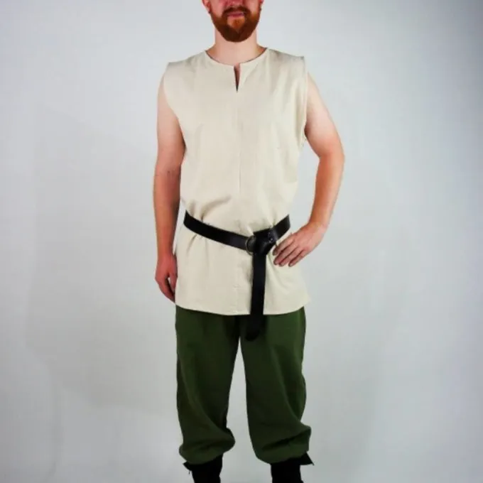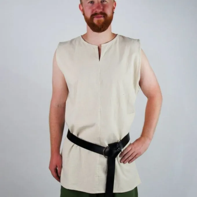 Tunics like this were basic garments worn by men from the Early to Late Middle Ages all over Europe. They can be worn separately or as an undertunic. In cold climates they were combined with trouseres and leg wrappings.