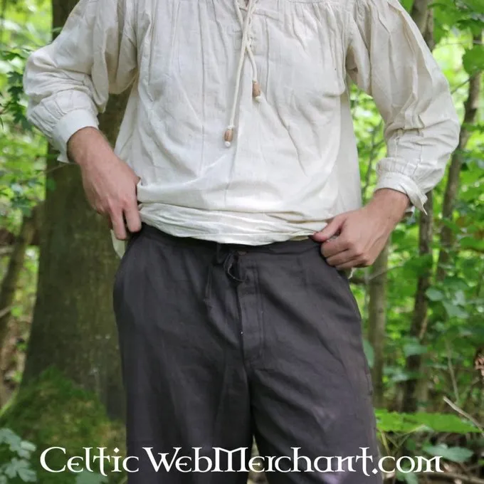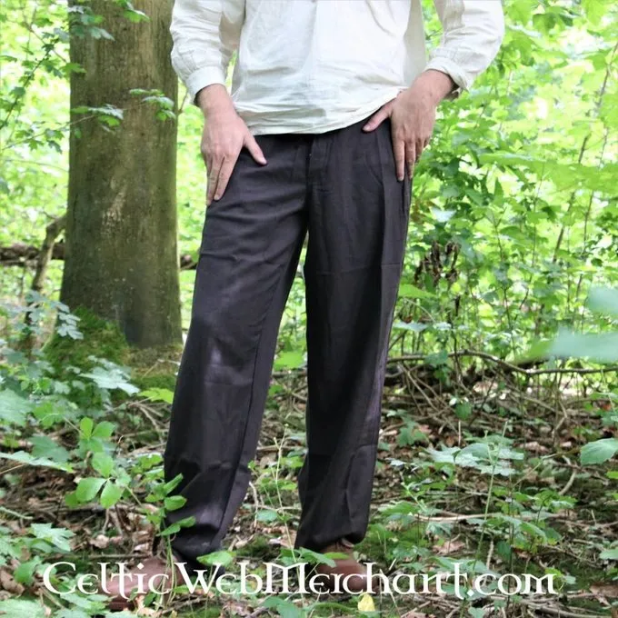 These cotton trousers can be closed with buttons at the waist. The trousers are available in the colours black, brown and cream in size S up to XXXL.