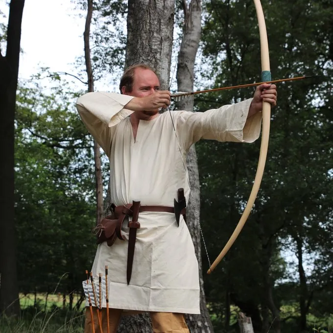 Tunics like this were basic garments worn by men from the Early to Late Middle Ages all over Europe. They can be worn separately or as an undertunic. In cold climates they were combined with trouseres and leg wrappings.
