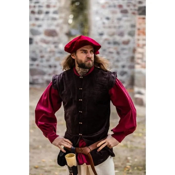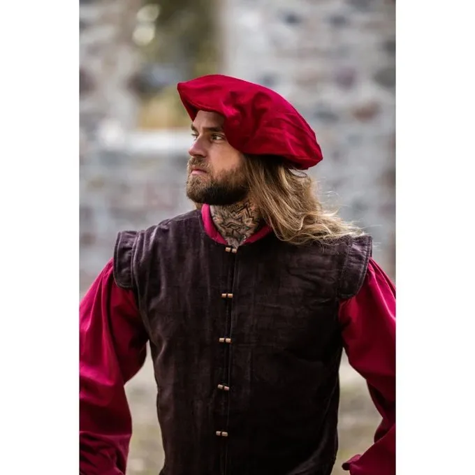 This beret is made of thick velvet. It is available in one size in the colours black, brown, blue, green, red.