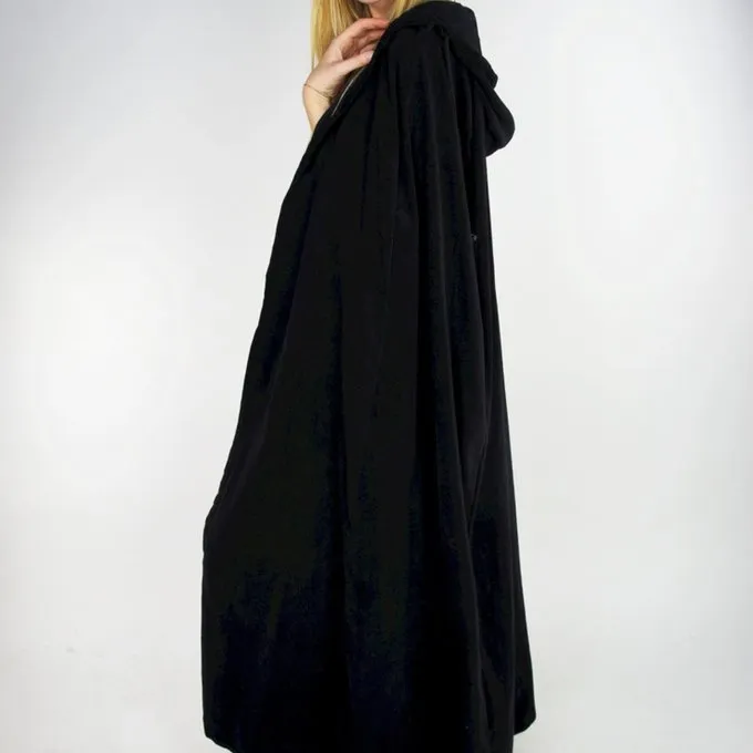 This cloak is made of velvet and has black lining. It is available in one size in the colours black, brown, blue, green and red.