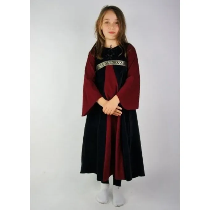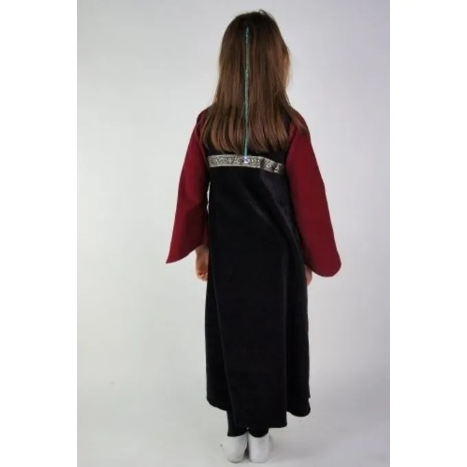 This dress is made of duvetyn and has wide sleeves. It has an embroidered band around the chest. It is available in size XXXS to XS.