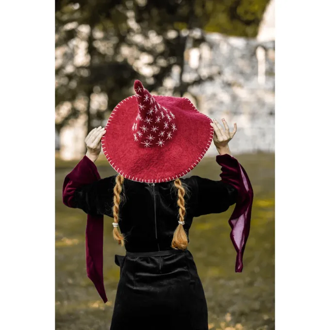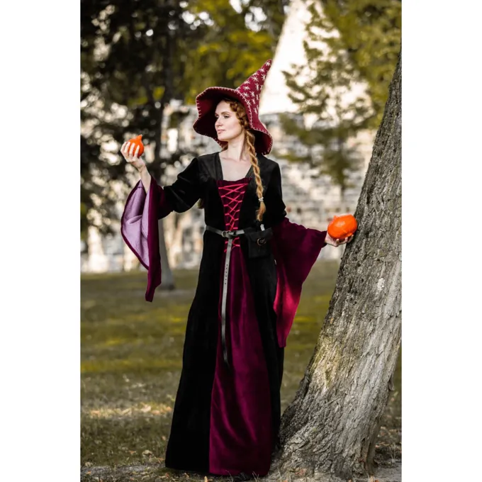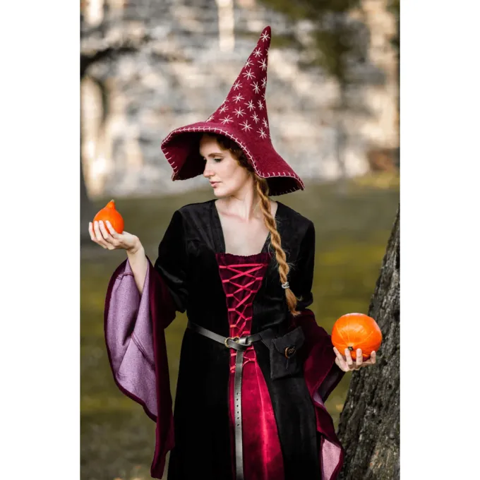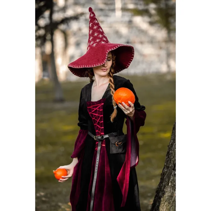 This luxurious witch hat is an indispensable accessory for every witch. The hat is made of wool felt and has an extra wide brim, so you can better hide your hair or face. It also offers the option of incorporating branches into the hat, for example.