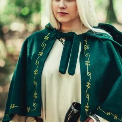 The chaperon is a medieval headdress that was mainly worn by the lower classes of society during the early Middle Ages. Around the end of the Middle Ages, richer people also started to wear fashionable chaperons. This luxurious chaperon is made of a wool mix and protects your head, neck and shoulders against wind, rain and cold. A nice accessory for when you will be re-enacting or LARPing in the winter or just on a cold day. The chaperon is beautifully decorated on the edges with embroidered vine patterns. You can fasten the chaperon with the woollen cords so that it stays comfortably in place. It has a long-pointed hood in medieval style.