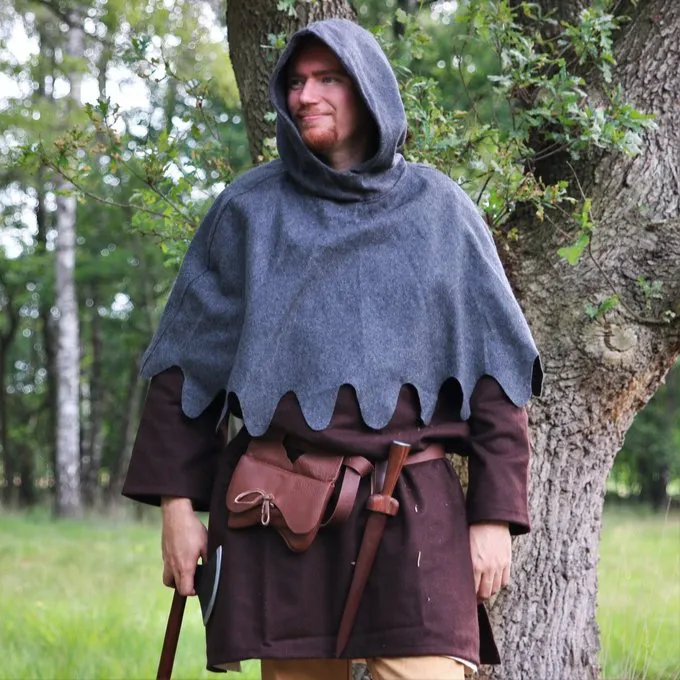 This chaperon is made of thick wool and covers the largest part of the shoulders. The hood has a long point at the end. It fits all sizes.