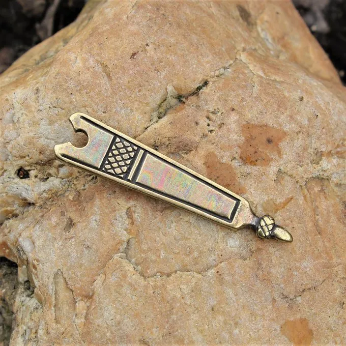 This belt end is a replica of a 14th century original excavated in London. The original is nowadays part of the collection of the London Museum. This belt end is made in the Gothic style and similar originals were worn all over Europe.