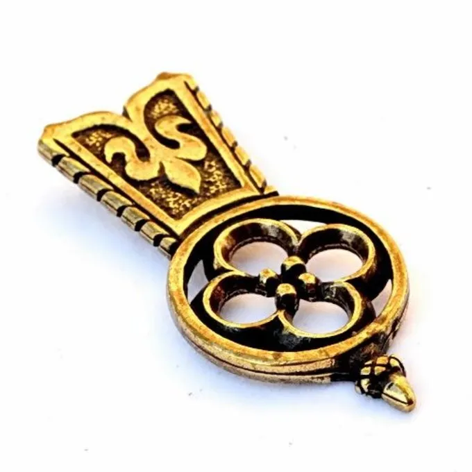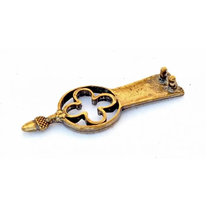 This gothic belt end is a replica of a medieval original that was worn around the 14th century. The belt end is shaped like a quatrefoil. A motive that was often used in architecture and jewelry during the Gothic era.