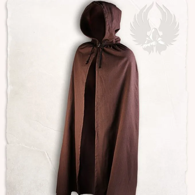 This cloak is suitable for reenactment, cosplay and LARP. It is made of cotton canvas, which protects the wearer against rain and wind. The cloak has a classic cut and is fitted with a large hood. The cloak can be closed with a button. Overall, this cloak is ready to become your faithful companion!