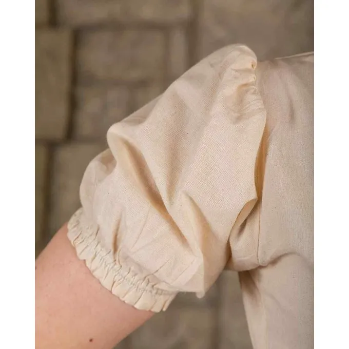 This summer blouse for women has a nice fit and is made for the warm summer days. It is short, light in fabric and can be combined with both skirts and dresses. The blouse also looks very nice with a corset or belt. Perfect for a LARP gathering or medieval festival.