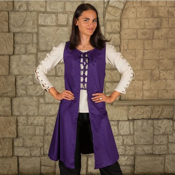 This overdress is suitable for re-enactment, cosplay and LARP. The dress is made of canvas. It has a lace closure and can be fastened at the front. Depending on which underdress you wear, you can wear this overdress all year round.
