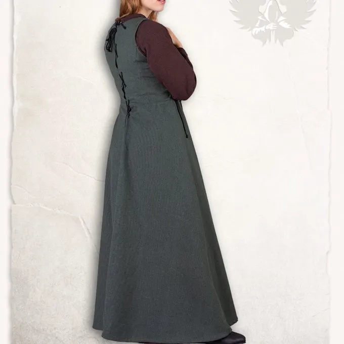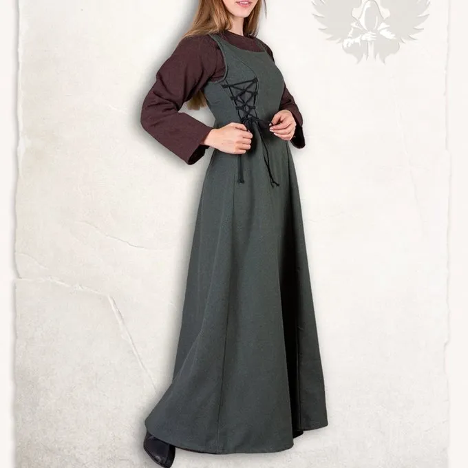 This dress is suitable for reenactment, cosplay and LARP. The dress is made of canvas, this fabric makes the dress extra sturdy. It has a fairly simple design, but the lacing gives the dress a great look. The lacing also ensures a perfect fit for its wearer. Due to its simpler design, this dress is suitable for multiple bases for costumes. So you can experience “the everyday life” in a market or depict a warrior with this dress.