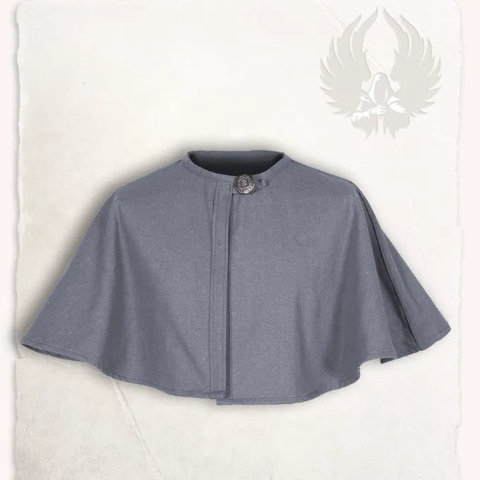 This short cloak is suitable for reenactment, cosplay and LARP. The coat is made of cotton. This kind of cloak was often worn by pilgrims in the Middle Ages. The cloak has a button closure.